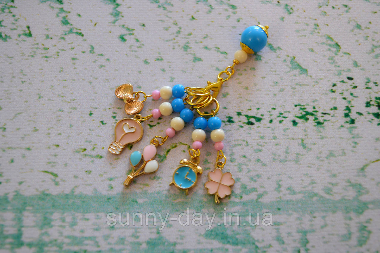 Комплект маркерів для вязання включає в себе декілька маячків з карабінами, що виготовлені у одному стилі.