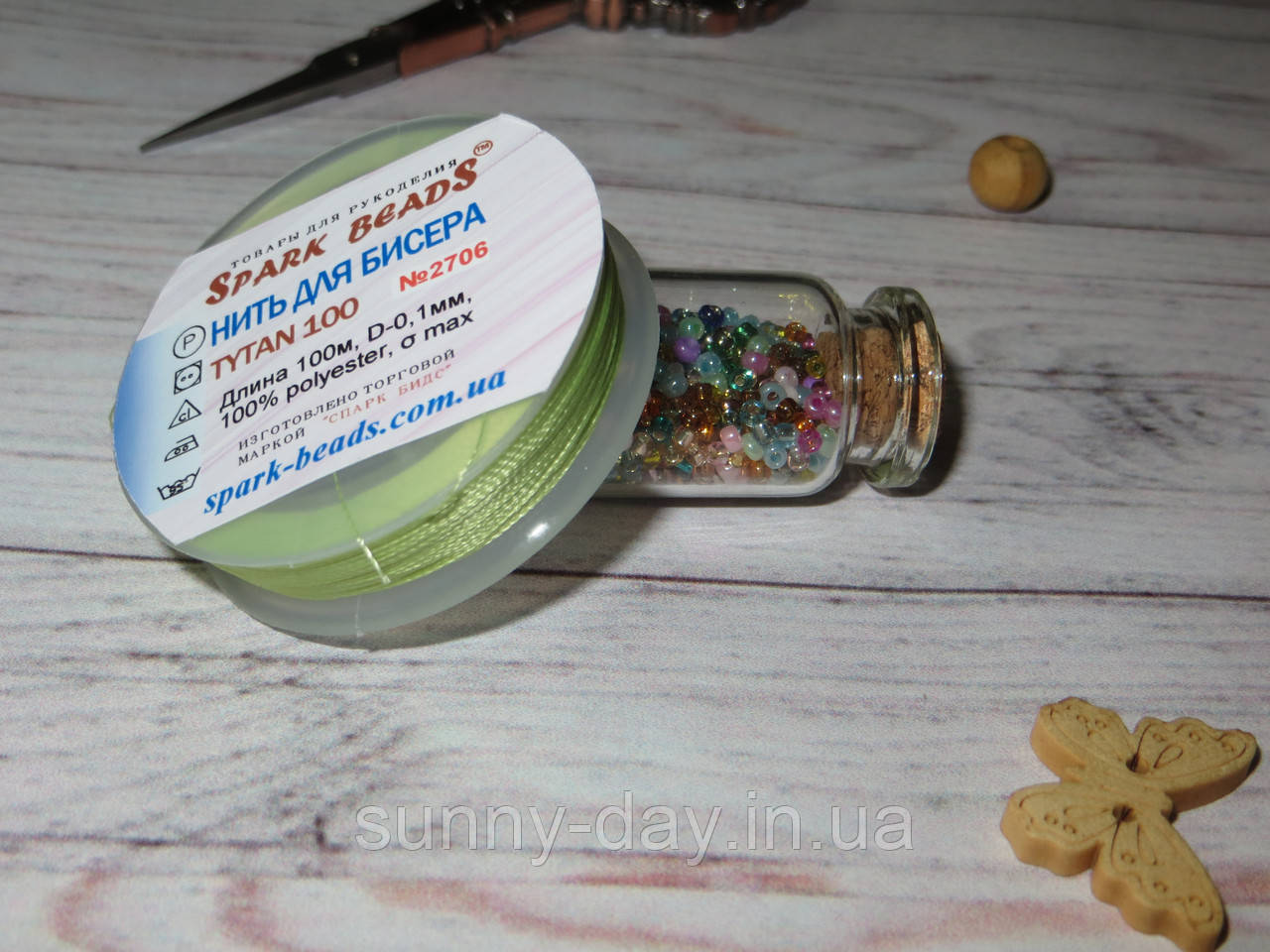 Нитка для бісеру TYTAN 100, колір No2706, світло-зелений, 100 м, фото 1