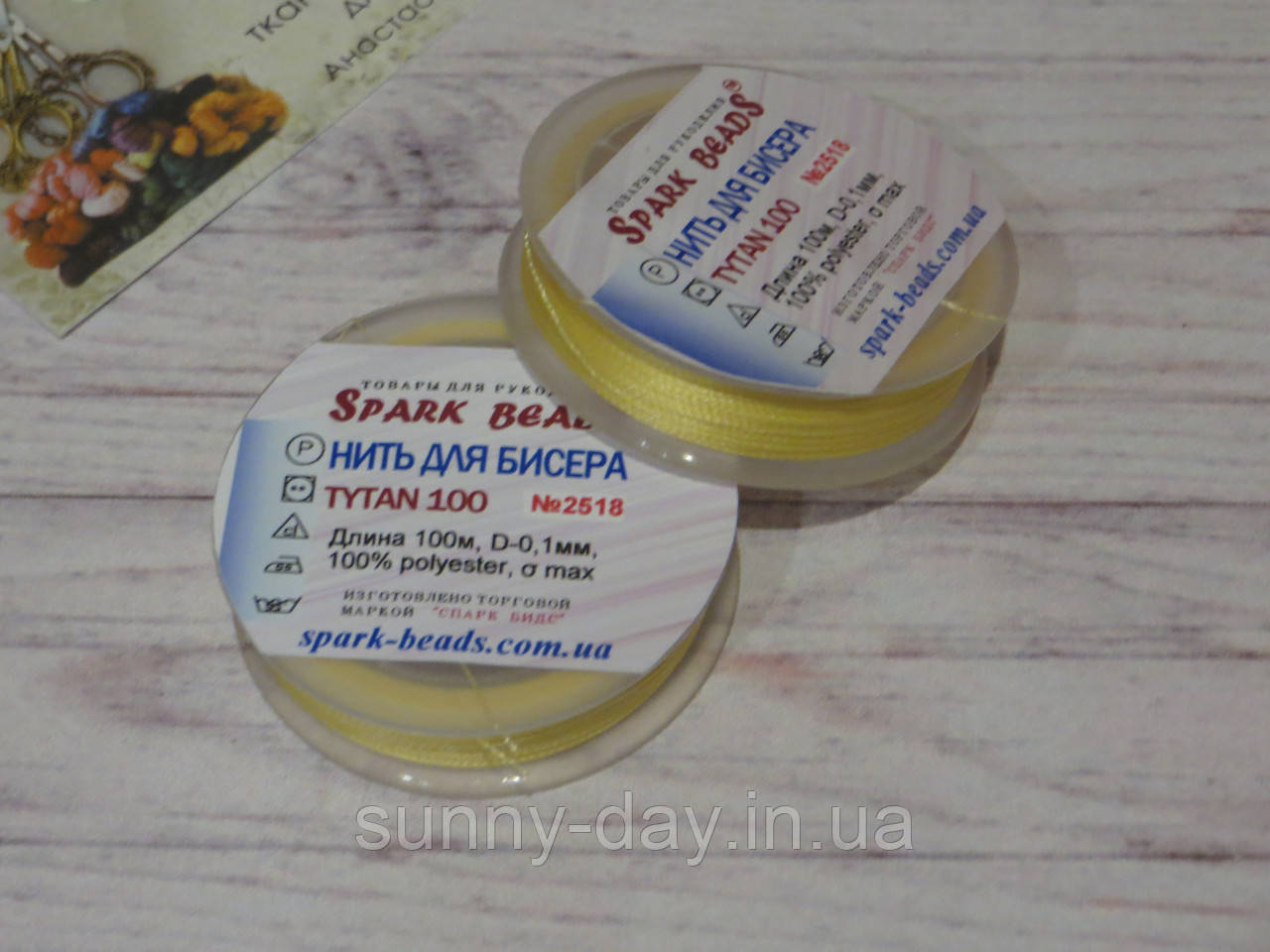 Нитка для бісеру TYTAN 100, колір No2518, жовтий світлий, 100 мНитка для бісеру TYTAN 100, колір No2518, жовтий світлий, 100 м