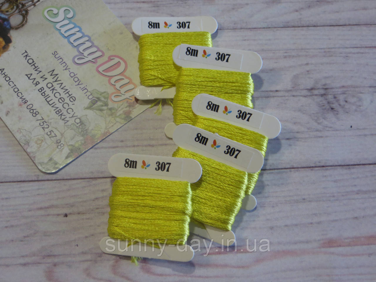 Муліне Sunny Silk — це 100% шовкові нитки (країна виробник — Корея), палітри яких становить 67 кольорів, які за номером і відтінку збігаються з муліне DMC. Пасма складається із 6 ниток, і намотана на бобінку із зазначенням номера кольору.